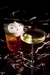 奥行きのある心地いいカフェのような空間で、メニューには南インド風のカレーやサバサンド、ベトナムのフォーなど、スパイスの利いたエスニック料理の数々が並ぶ。そんなスパイシーな料理によく合うと人気なのが「塩レモンサワー」。レモンの果肉を砂糖と塩で漬けた自家製レモンシロップを使用。ベースは焼酎ではなくウォッカだ。グラスの縁には塩がまぶされてるが、実はもうひとつ秘密が。乾燥させた皮を砕いて作ったレモンピールシュガーも混ざっていて、仕上げにもパラパラ。この甘じょっぱいレモンサワーとスパイシーさの組み合わせは絶妙。塩の粒感と一緒にふわっとあがってくるレモンの香りも心地いいぞ。