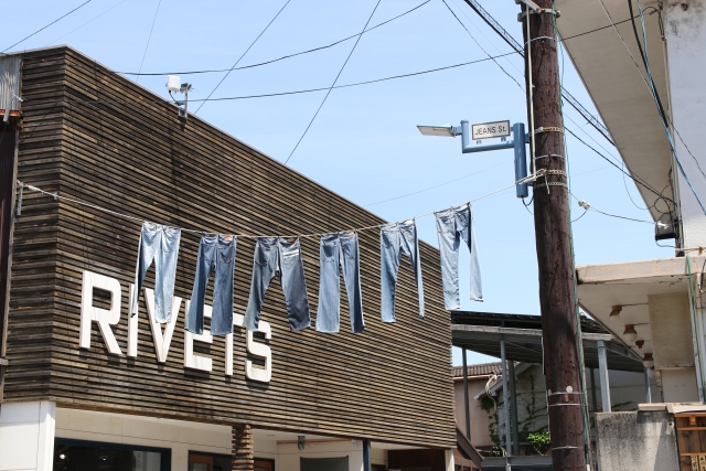 現在、岡山発ジーンズメーカーの数は、正確にはわかりませんが数百を超えるとされています。有名なところでは桃太郎ジーンズ、ジャパンブルージーンズ、ジョンブル、ビッグジョン、ベティスミス、ボブソンなど。そして、児島には、個性あふれる商品を扱うジーンズメーカーのショップが軒を連ねる約400メートルジーンズストリートがあります。
