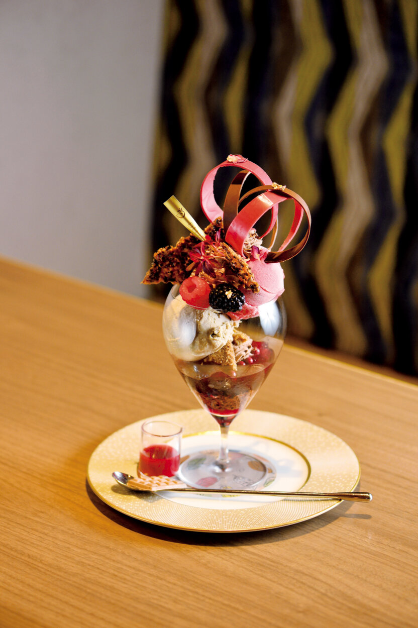 わお!運ばれてきた瞬間、パァッと気持ちが華やぐ。人気ショコラティエ・江口和明氏が手がけるカフェ『デリーモ』で、ショコラとともに評判なのが、アートのように美しいパフェ。