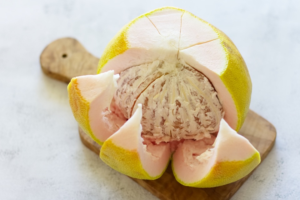 スウィーティーは、グレープフルーツとブンタン(ポメロ)を交配して生まれた柑橘類で、見た目はグレープフルーツに似ていますが、味や香りは異なります。
