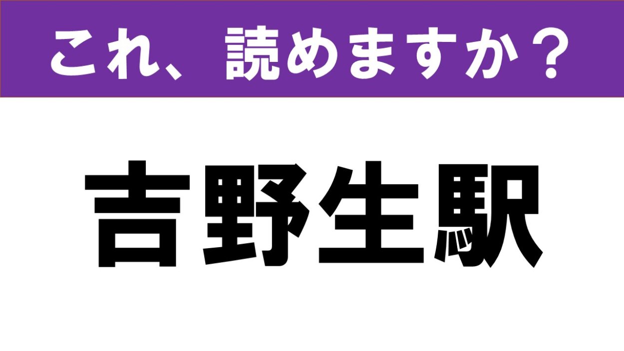 「吉野生駅」という漢字を読めますか。愛媛県の駅名です。一見難しそうに見えますが、読めそうな漢字ですね。