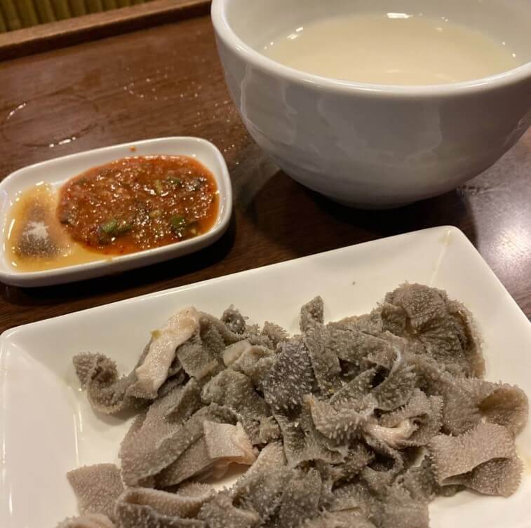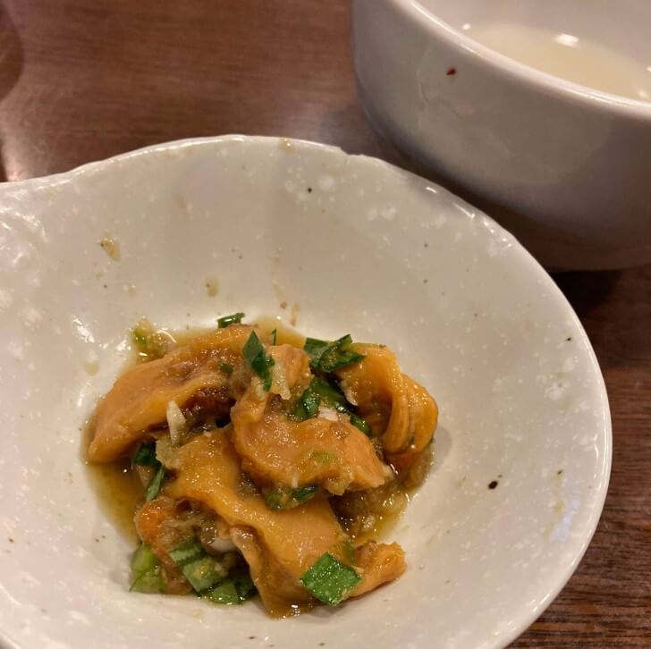 続いて女将が薦めてくれたのがセンマイ刺し。辛いタレが何とも言えず、マッコリともよく合います。最後は宮城名物のホヤ。キムチなのか辛味和えなのか判別がつきませんが、美味しいので料理名は何でもよくなる「びっくりさ」であります。こんな感じで、まぁ最初から最後までびっくりのお店です。それが理由で店名も「びっくり」になったのか、名物女将のみぞ知る、ですね。