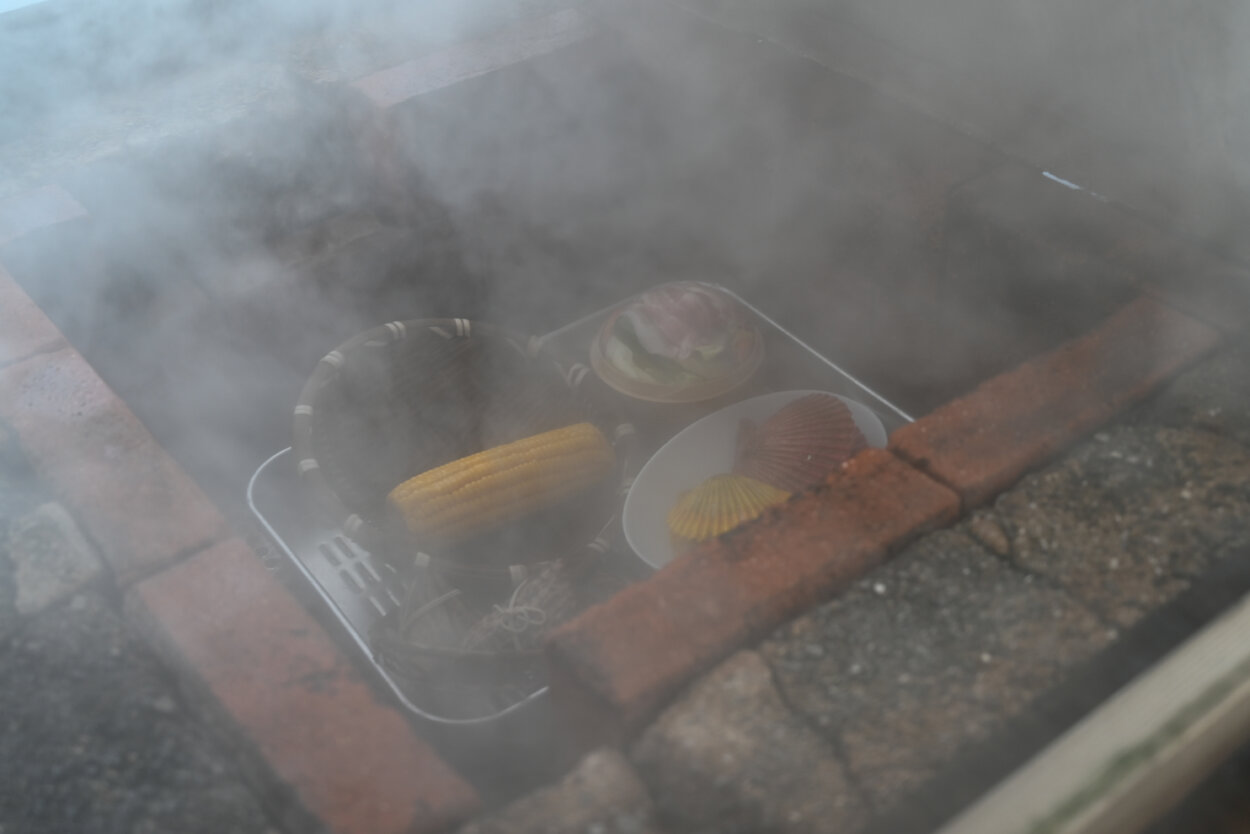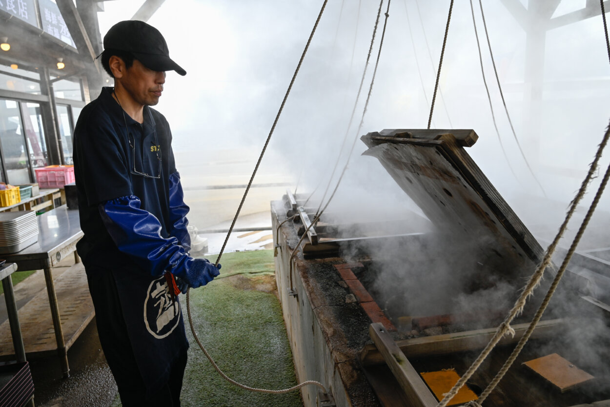 温泉の蒸気で作る「蒸し料理」