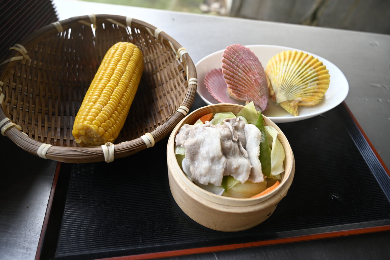 温泉の蒸気や地熱を活用した「蒸し料理」は、火山と深い関わりをもつ日本ならではの食文化。地域によって「源泉蒸し」「地獄蒸し」「温泉蒸し」など呼び名はさまざまだが、温泉の蒸気で蒸すと食材の旨みが増すため、全国各地の温泉地や宿で、調理法として広く取り入れられている。