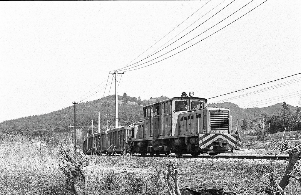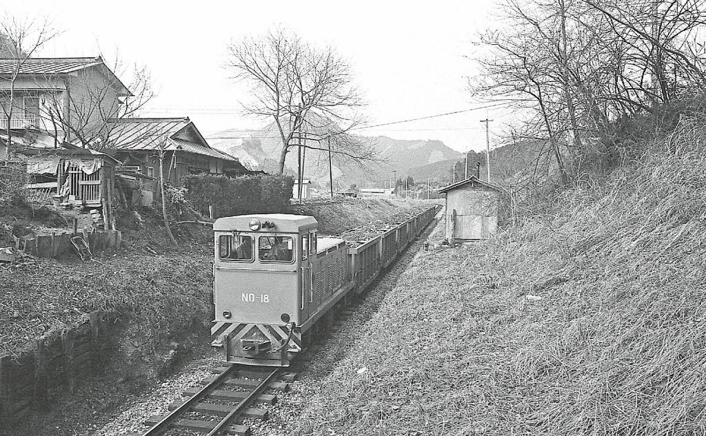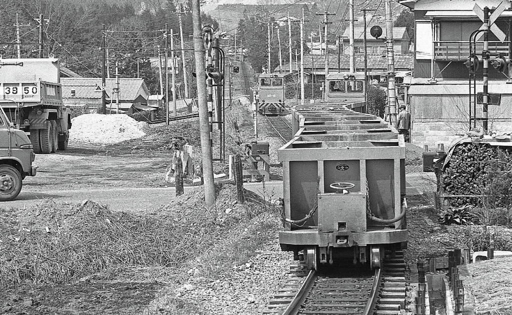 ※トップ画像は、山から工場へと向かう石灰石を満載した唐沢鉱山軌道の鉱石列車。左側の線路は東武鉄道会沢貨物線(廃止路線)=1975年3月15日、安蘇郡葛生町、写真提供/田中義人