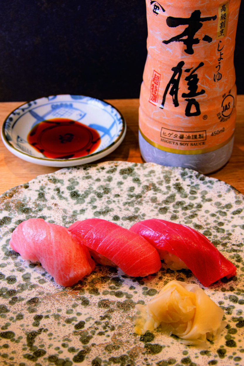そんな寿司に合う醤油を求め、80種類以上も試した中から選んだ醤油が「本膳」だ。熟成によって生まれたコクと旨みが、選りすぐりのネタやシャリを優しく包んでくれる。
