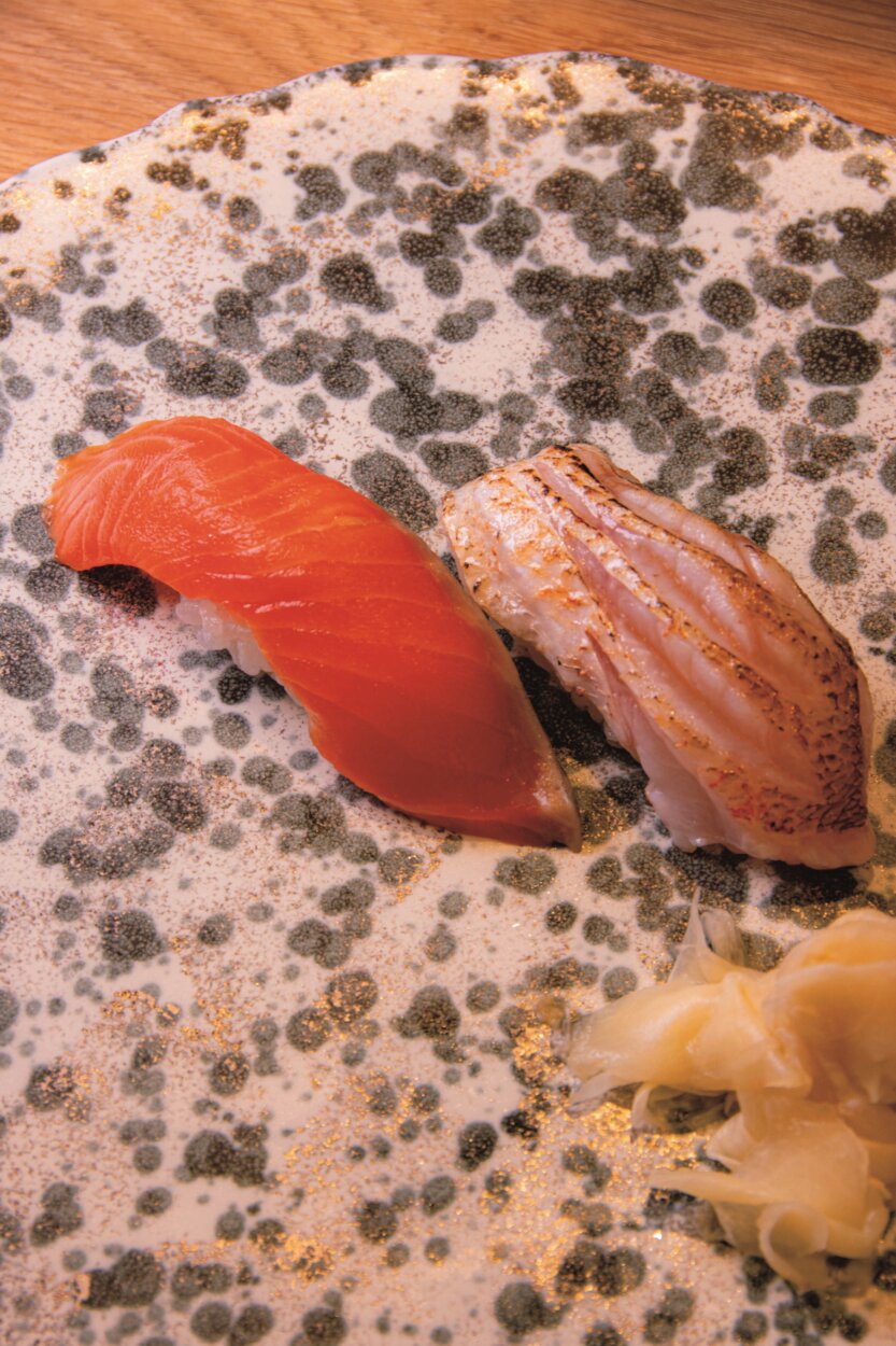 そっと摘んで舌に乗せれば、佐渡サーモンの澄んだ甘みやのどぐろの品のある脂がシャリと一体になりつつ膨らんでくる。ネタの揃えは新潟の海で水揚げされる季節ごとの白身や貝類に、一本買いするマグロなどなど目移りするほどだ。
