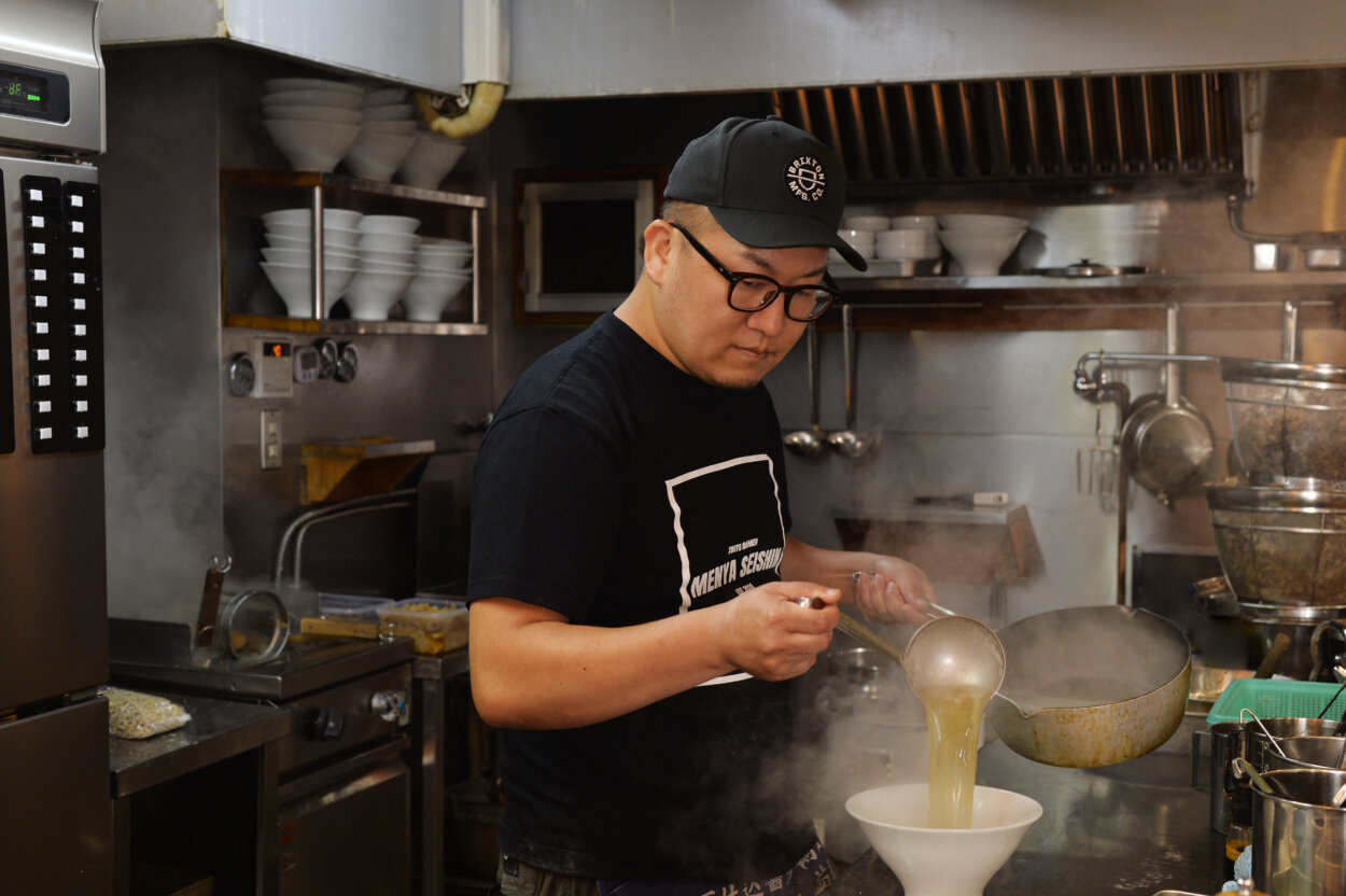 「TRY新店大賞」に輝いた『麺や 晴心』は、東京・落合に2024年11月11日オープン。店主の高野将弘さん(「高」は、はしご高)は、フレンチやイタリアン、割烹居酒屋など、さまざまなジャンルで料理の腕を磨き、『亀戸煮干中華蕎麦つきひ』をはじめ人気店で修業を重ねてきた実力者。