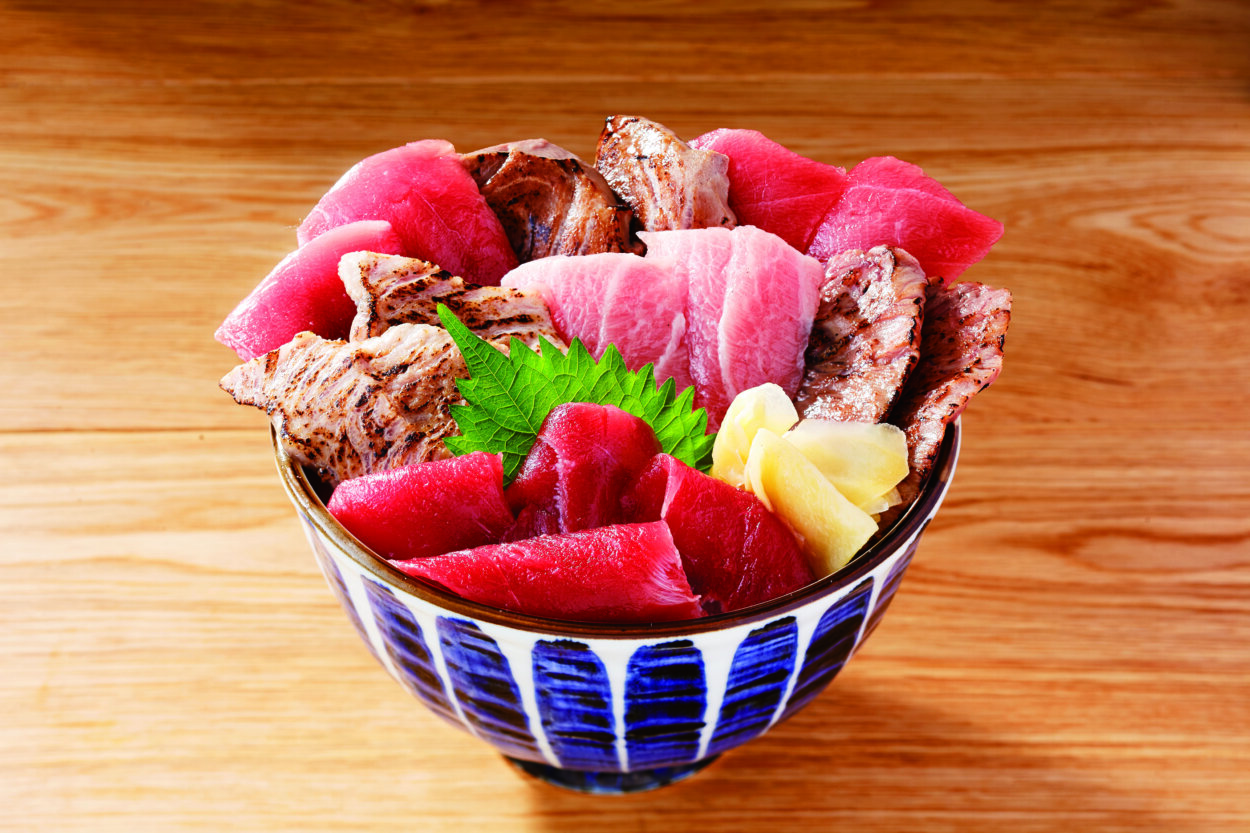まず注目は、新宿高島屋限定の『クロマグロ専門工房 鮪斗(yuto)』による「戸井産本鮪まるごと食べ尽くし7彩丼」(1人前 5200円・各日50食限り)。大トロ、中トロ、赤身、中落ちに加え、ほほ肉、脳天、カマトロまで、戸井産マグロの魅力を一度に味わえる贅沢な一杯です。