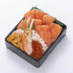 後半の目玉は、新宿高島屋初登場の『サーモン食堂』による「蝦夷サーモン・セレブサーモン2種食べ比べいくら丼」(1人前 2629円)。ほどよい脂身の蝦夷サーモンと、ノルウェー産・チリ産のこだわりサーモン“セレブサーモン”を秘伝の塩圧締めで仕上げた、食べ比べが楽しめる丼です。