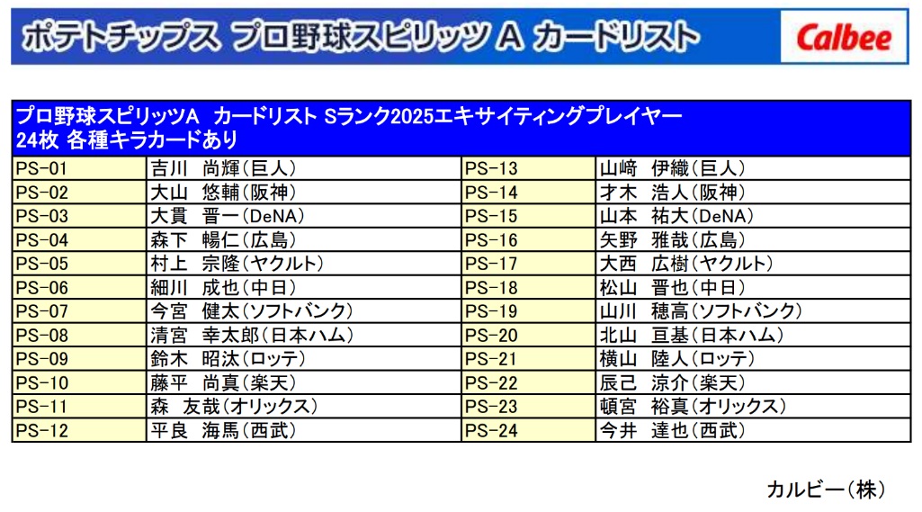 Sランク選手のカード付き! 「ポテトチップス プロ野球スピリッツA」が再び登場、パワスピ・ポイントも獲得できるぞ