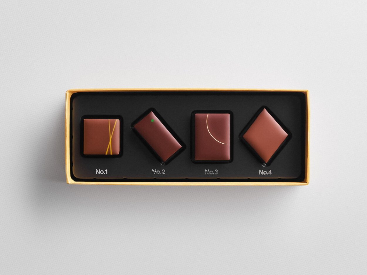 今回のテーマは「日本の柑橘」。出品作『日本柑香(にほんかんか)』は、温州みかん、すだち、大和橘、柚子の4種の柑橘を用いた4粒のボンボンショコラです。