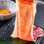 メインは「タン塩」「ハラミ」「ゲタカルビ」「和牛カルビの月見焼きすき(卵黄付)」など、赤身を中心に多彩な部位が揃う。デザートには「選べるアイス(バニラ・抹茶・ゆずシャーベット)」を用意。