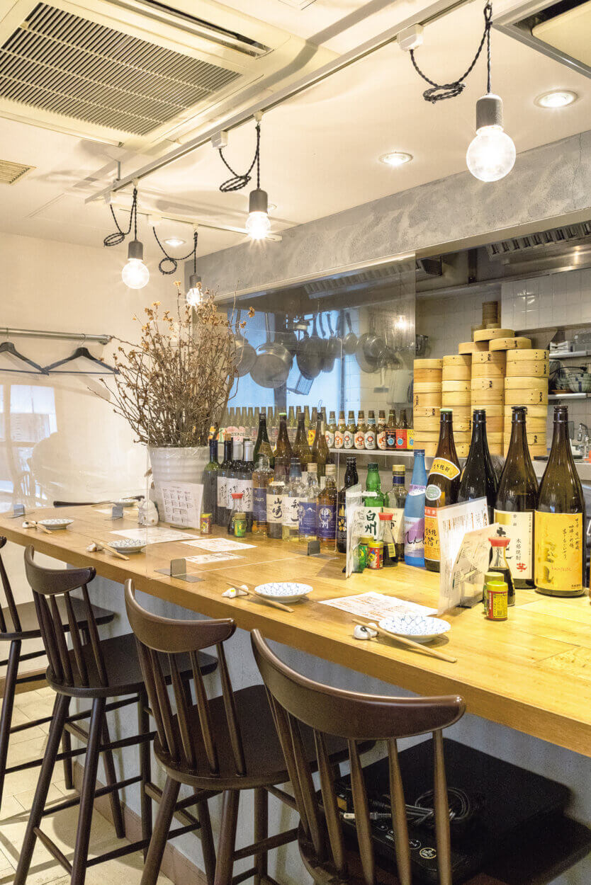 ランチにはメインの他に小鉢が3つ付き、夜も前菜の盛り合わせや10種の味が揃う焼売など、いろんな味を少しずつ楽しめる構成。しかも様々な大きさに挽いた鶏肉を使うことで、味わい、食べ応え、さらに食感も楽しいという焼売を筆頭に、こだわりの味に仕上げている。
