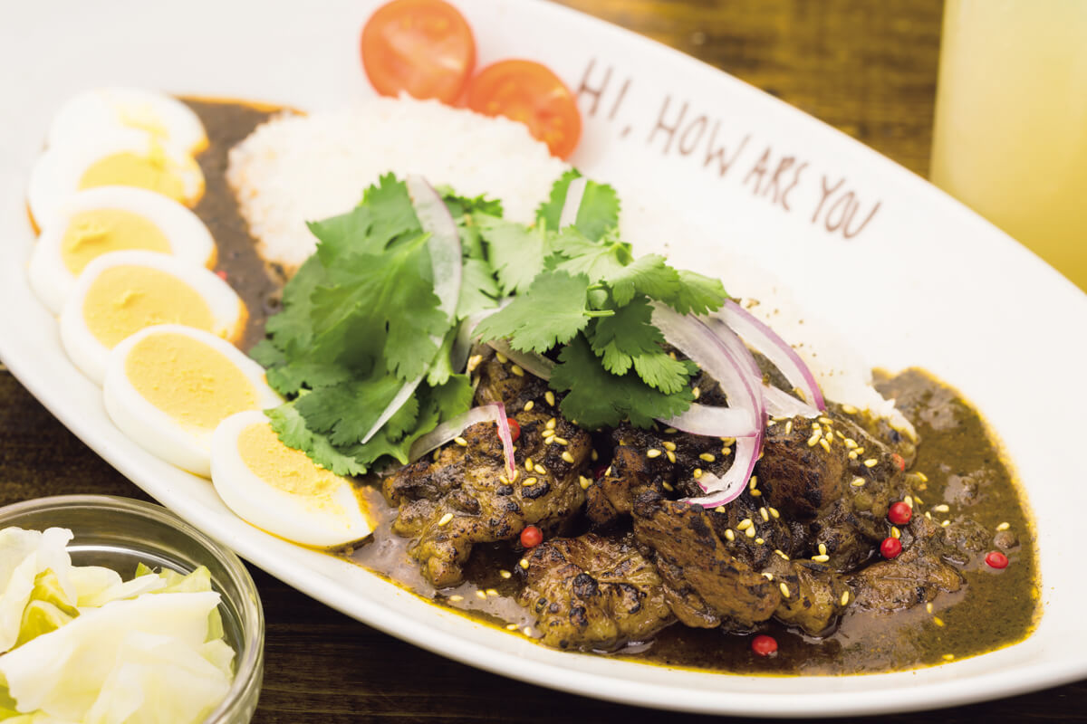 ラムの旨み、風味にあふれ、焙煎したスパイスに仕上げに使う黒酢が負けじと香る。具材やスパイスの個性の引き出し方、旨さのかけ合わせ方にセンスを感じずにはいられない、クセになるおいしさなのだ。