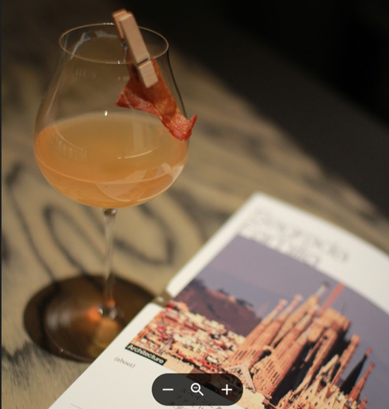 スペインを代表する100年以上未完成の教会『サグラダ ファミリア』をイメージしたカクテル『Sagrada Familia』(1800円)は、グラスに添えられたガーニッシュ(つけ合わせ)を食べることで口の中で完成する、サングリアのような味わいの一杯となっている。