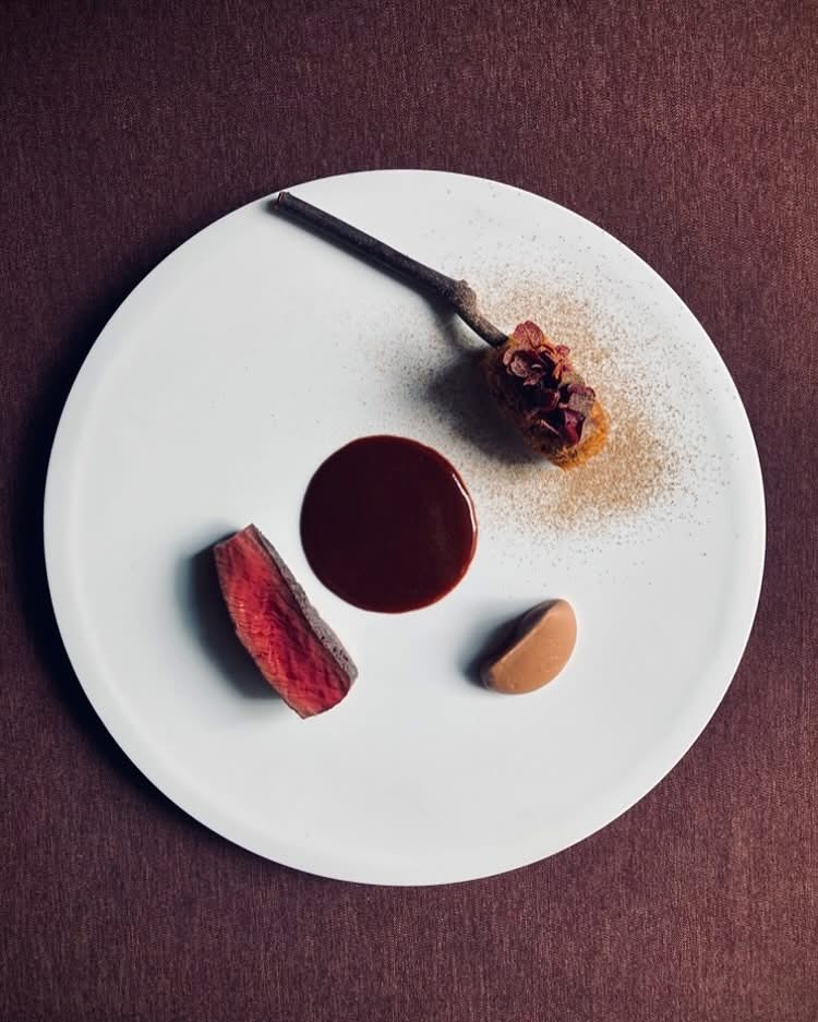 料理を手がけるのは、2024年に料理長に就任した林弘善。代官山『レザンファンギャテ』や六本木『ル スプートニク』などで経験を重ねてきた実力者だ。四季折々の厳選食材を丁寧に扱い、香りや質感まで活かす繊細なフランス料理を繰り広げる。