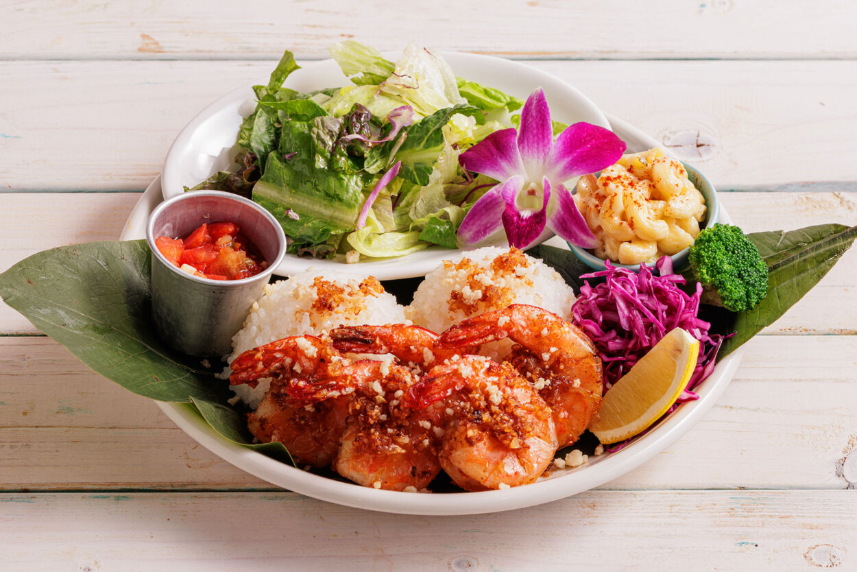 さらに「ロコモコ」や「ガーリックシュリンププレート」、「ハンバーガー」など、食事メニューも豊富に揃う。