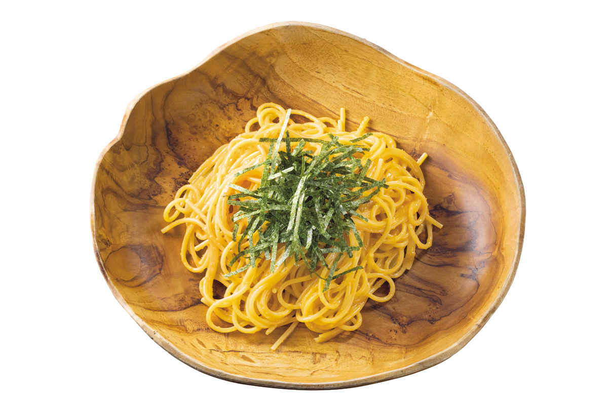「タラコとウニ」をいただくと、まずウニの深くまろやかな風味にうっとり。そしてほどよい噛み応えがあることで、ウニの旨みやたらこのプチプチとした食感にじっくりと浸れるのだ。