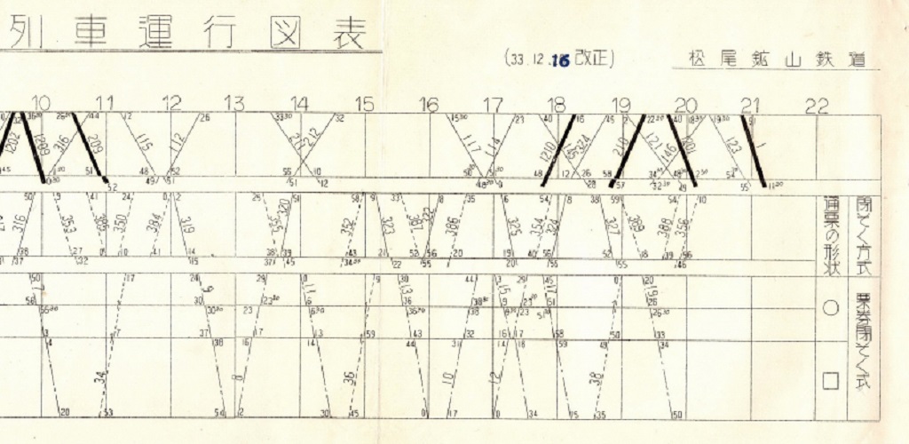 路線は、岩手県を走る国鉄(現JR)花輪線の大更(おおぶけ)駅を起点に、松尾鉱山のある屋敷台駅(のちの東八幡平駅)までの全長12.2kmを結び、途中には田頭駅(でんどうえき/起点から2.5kmの地点)と、鹿野駅(ししのえき/起点から5.1kmの地点)があった。標高差206.7m、最高勾配26.7パーミル(1キロ進んで26.7mの高低差)もある、まさに山を行き来する鉄道だった。橋りょう(鉄橋)も、続橋(つづきばし)、後渡川(ごわたりがわ)、赤川(あかがわ)と3カ所あった。