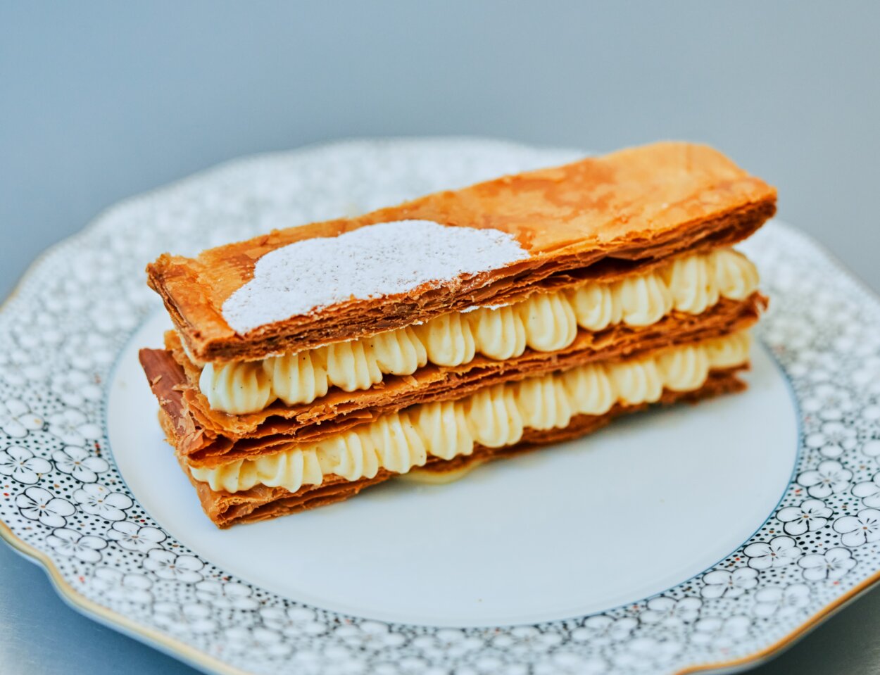 セイボリー(アフタヌーンティーで提供される塩気のある軽食や料理)には、野菜やハーブ、肉、魚介を使ったクロワッサンサンドやタコスが並ぶ。