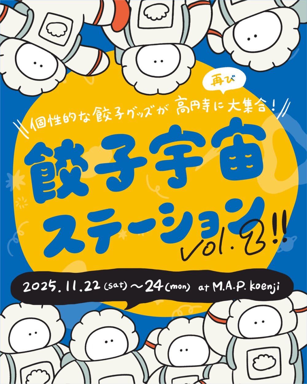 「宇都宮、浜松、宮崎は餃子の聖地として知られていますが、実は都内にも知られざる餃子の名所があるんです」(餃子クリエイター・穴ヶ崎氏)餃子をテーマにしたポップアップイベント「餃子宇宙ステーション vol.2」が、2025年11月22日(土)〜24日(月・祝)に東京・高円寺で開催される。会場は、第1回に続きギャラリースペース「M.A.P.」。入場は無料。