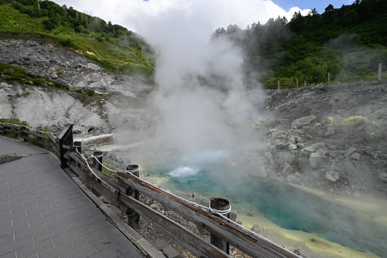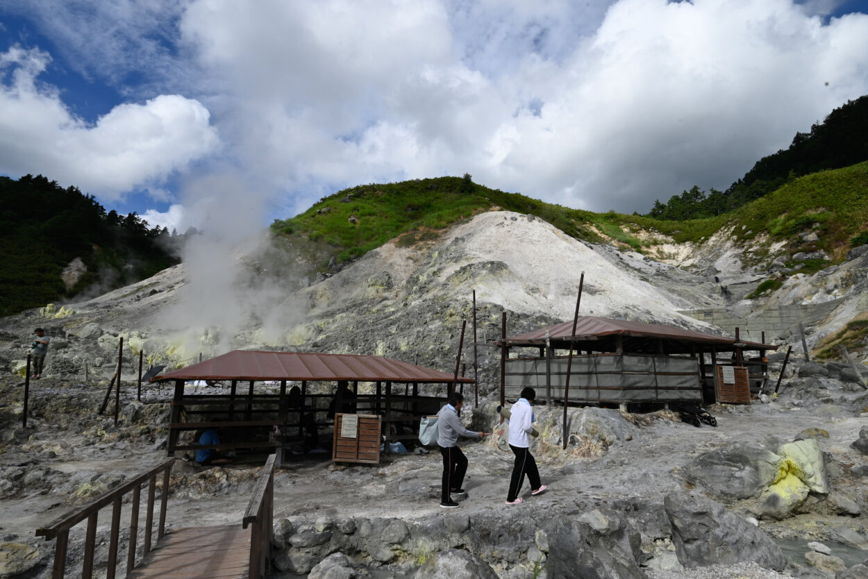 ブナやアオモリトドマツの原生林が広がる自然環境豊かなエリア。江戸時代には硫黄の採掘が行われ、荒涼とした岩山のあちらこちらから噴煙があがっている。噴気孔は100カ所以上にもなるという。