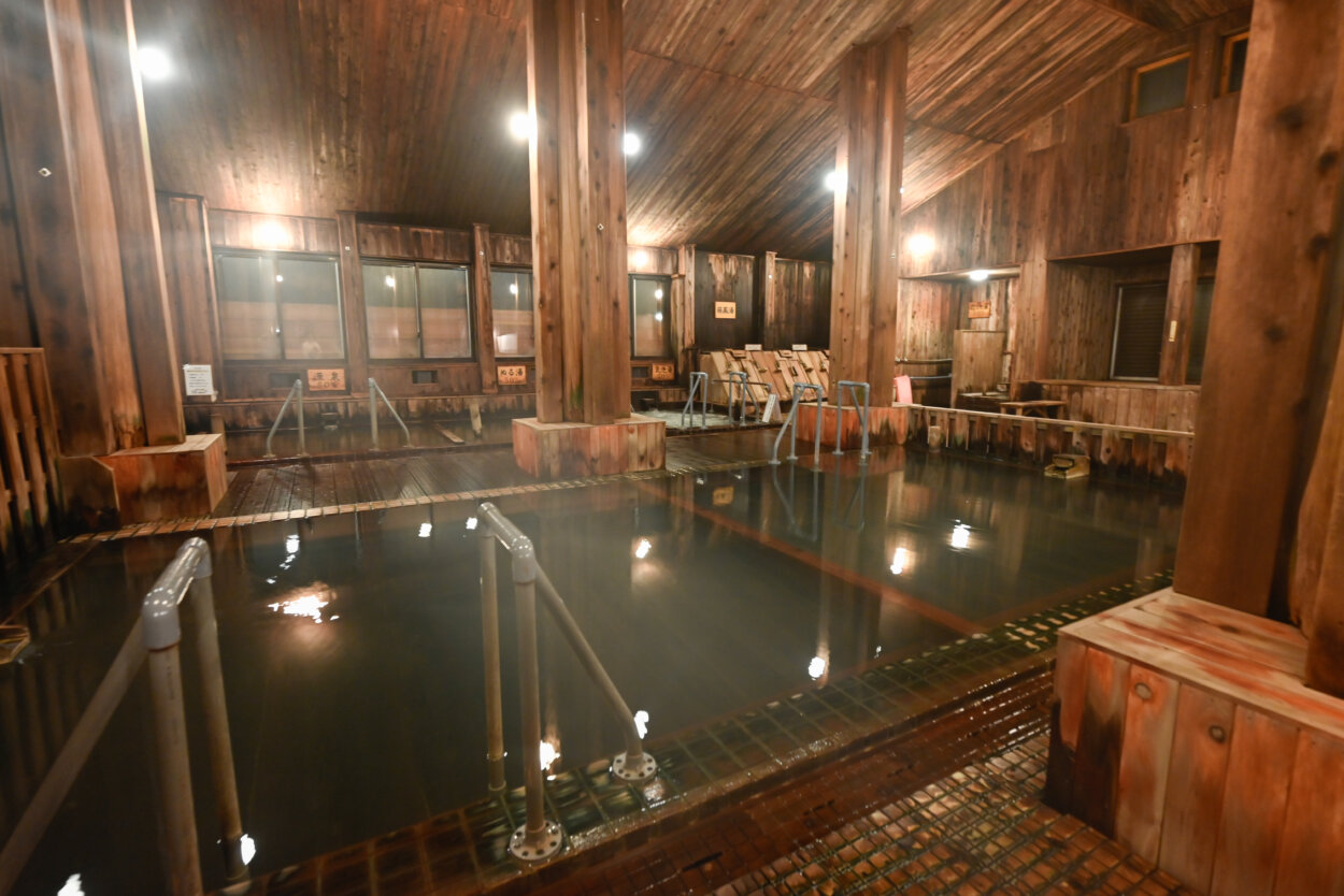 この湯を引いた大浴場が、「玉川温泉」と、直線距離で約600メートル(車では7分ほど)離れた、1泊2食型の「新玉川温泉」2つの宿泊施設にそれぞれある。