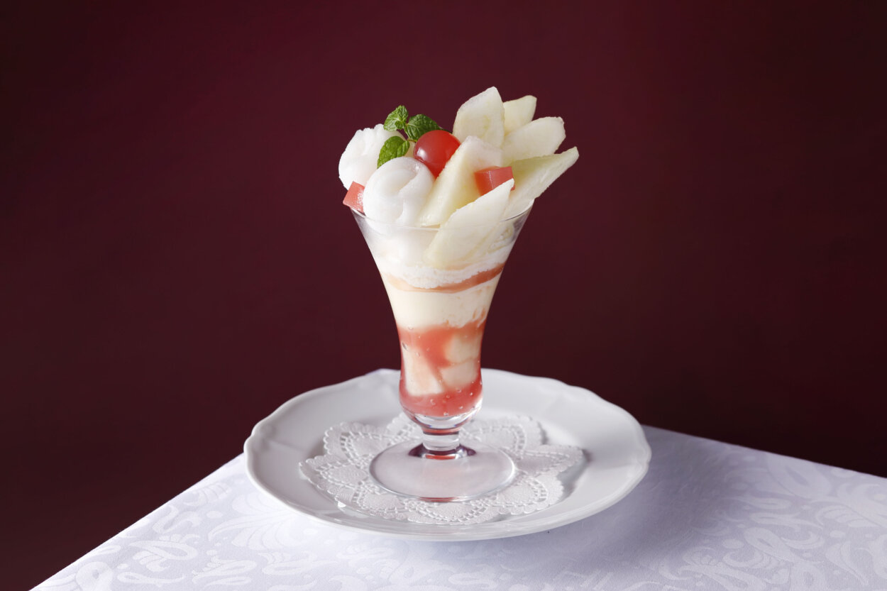 12月2日(火)〜28日(日)の期間は、12月の“旬のおすすめパフェ”として、旬のフルーツを使った2種のパフェが登場します。ひとつ目は、新潟県三条市産の洋梨「ル・レクチェ」を使用したパフェ。芳醇な香りととろりとした甘みを持つル・レクチェを、洋梨のゼリーや自家製アイスクリームと組み合わせ、果実本来の甘みを楽しめるパフェに仕立てられています。