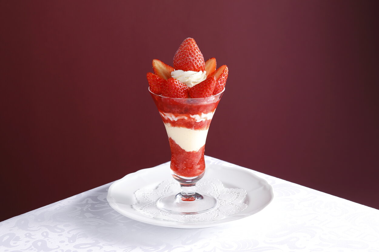 2つ目は、九州産苺「恋みのり」を使用したストロベリーパフェ。ほど良い甘味と酸味の味わいを持つ苺を楽しめる一品です。