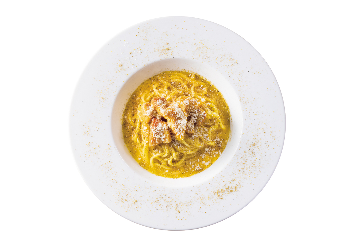 『カルボナーラ専門店 HASEGAWA 吉祥寺』山椒のカルボナーラ 1780円(ランチはサラダ付きで1580円) 重くならず、もちもち感も楽しめるように2mmの生パスタを使用