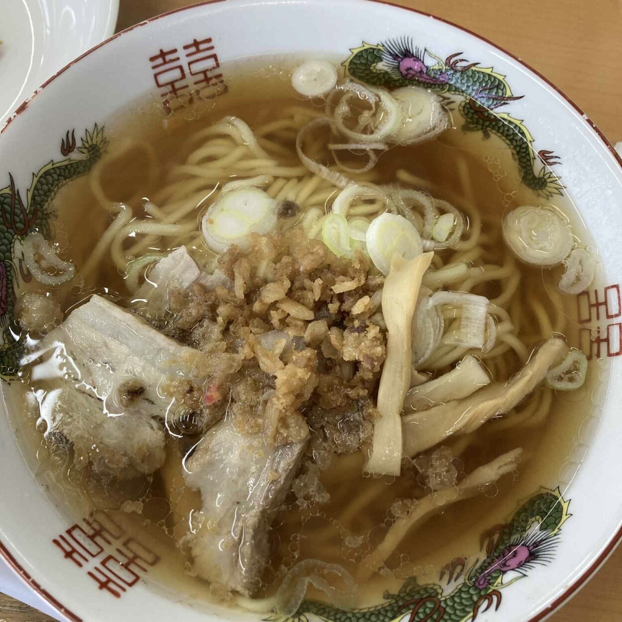 一口スープを飲むと、まろやかな味わいが口に広がります。麺は柔らかめでこれも筆者好み。油カスを混ぜて食べるとコクがさらに深くなり、箸が止まりません。古き良きラーメンながらも、食べたことのない味わいと具材や薬味とのマリアージュ。唯一無二のラーメンと思っています。