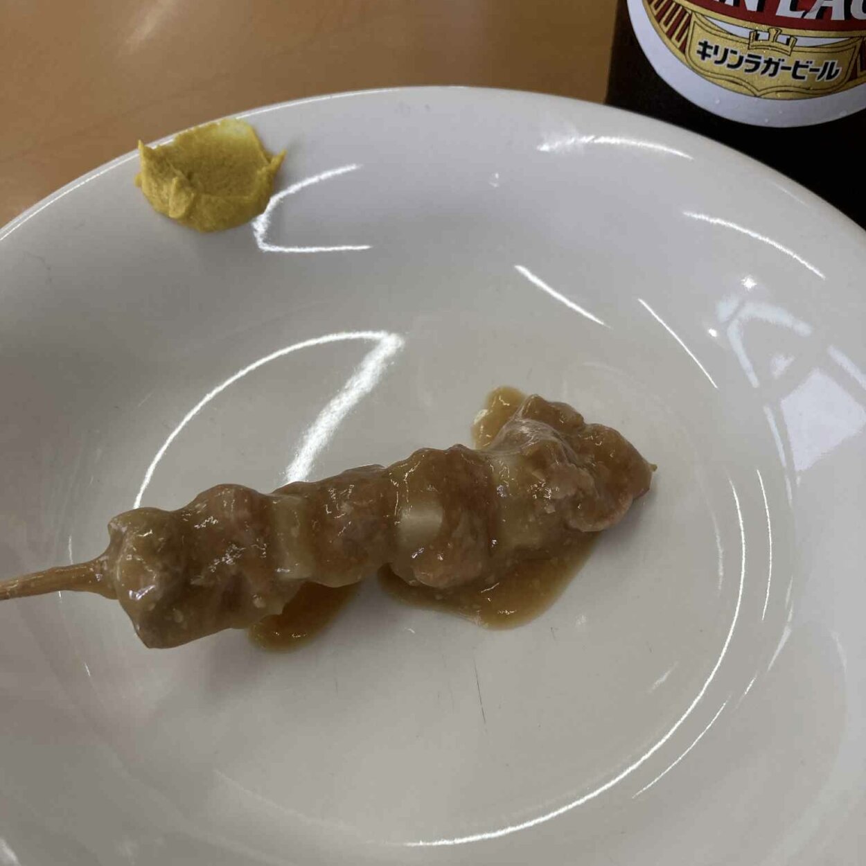 続いていただいたのは、「串」です。なんとも不思議な名前で、メニュー上はおでんのひとつとして表示されていますが、「どて焼き」にも近く肉(たぶん牛肉)に味噌だれがかかっています。これが何とも言えず旨い。