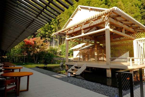 20カ国以上にホテルやリゾートを展開する「バンヤン・グループ」は、日本の文化や建築様式をグローバルブランドのこのホテルに取り入れるため、日本古来の木材を活かしつつ、風土に根づいた有機的な建築を手がける隈氏を起用した。能舞台は、そのコンセプトを具現したひとつと言えるだろう。開業当日の式典で、隈氏も、豊かな森がある「東山」の魅力に触れた上で、能舞台をホテルの象徴にしたことを説明したという。