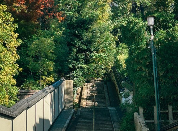 二年坂を筆頭にカフェや雑貨店も多い周辺エリアは賑わっているが、そこから道を一歩入り、龍馬坂を登りきったこのホテルまで来ると、観光地の喧騒は消え、一転して静寂に包まれる。
