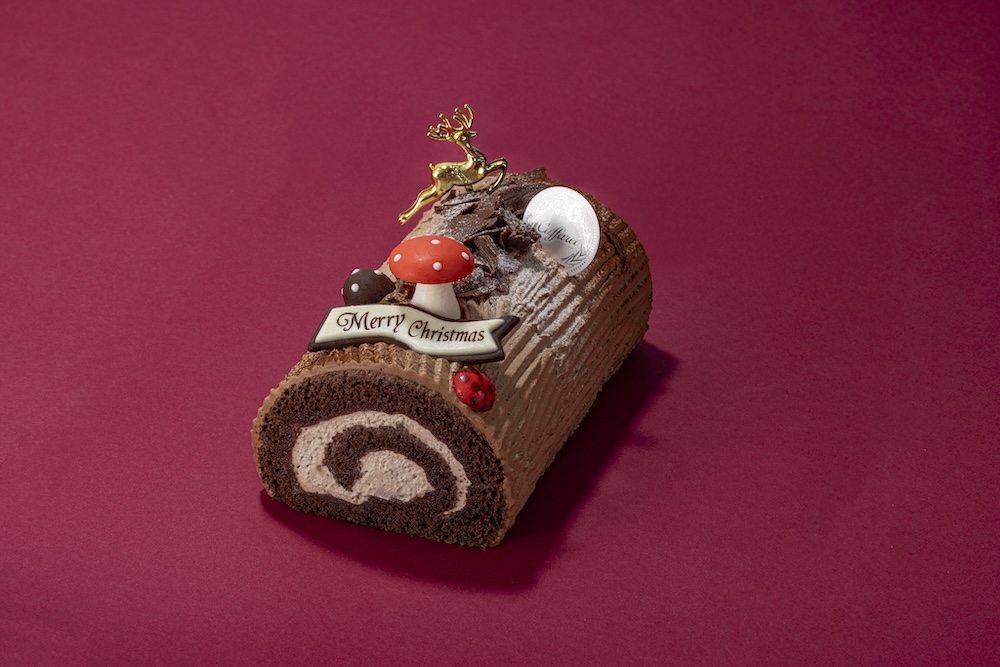 ブランドを象徴するジャンドゥーヤを贅沢に使用。ココア生地でジャンドゥーヤクリームとガナッシュを包み込むことで、一口ごとに濃厚で奥深い風味が広がる。仕上げにはジャンドゥーヤの削りチョコをトッピング。森から拾ってきた薪をイメージしたデザインに、きのこやてんとう虫などカファレルならではのモチーフを添えて、愛らしく上品な仕上がりに。