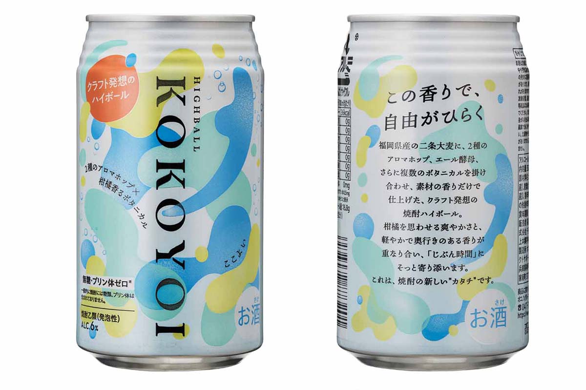 「ここよい」は、福岡県産の二条大麦をベースに2種類のアロマホップと、エール酵母、さらに複数のボタニカルを組み合わせる独自の「アロマレイヤー製法」により誕生した、“焼酎の新しいカタチ”を提案する新ジャンルの焼酎だ。