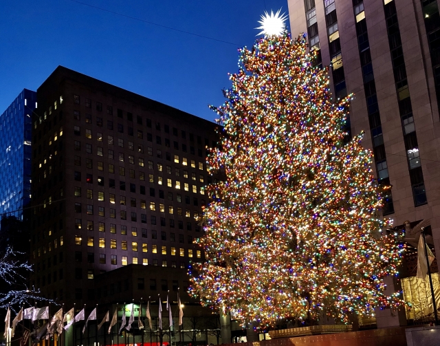 この季節になると、テレビのニュースなどでも世界中のクリスマスツリーが映し出されますが、やはり毎年壮観なのが、ニューヨーク・マンハッタンにあるロックフェラーセンターのクリスマスツリー。点灯式のセレモニーは、現地のテレビでも生中継されるほど。5万個以上のLEDライトで装飾されるとは、まさに本場!2025年も楽しみです。
