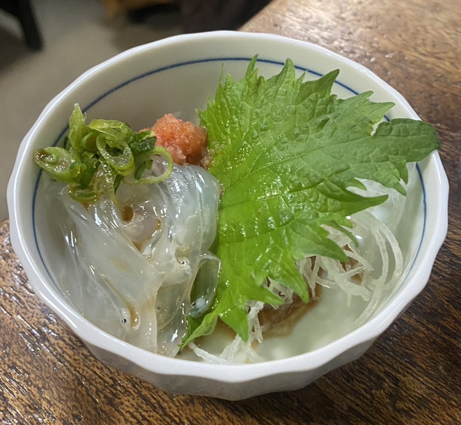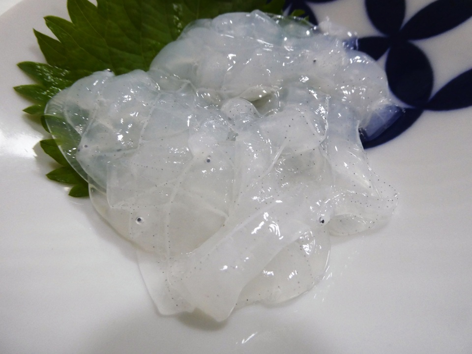 透明でぷるんとした舌触りが特徴で、噛むと独特の歯ごたえがあります。味わいは淡泊でクセがなく、ほんのりとした甘みと潮の香りが感じられます。