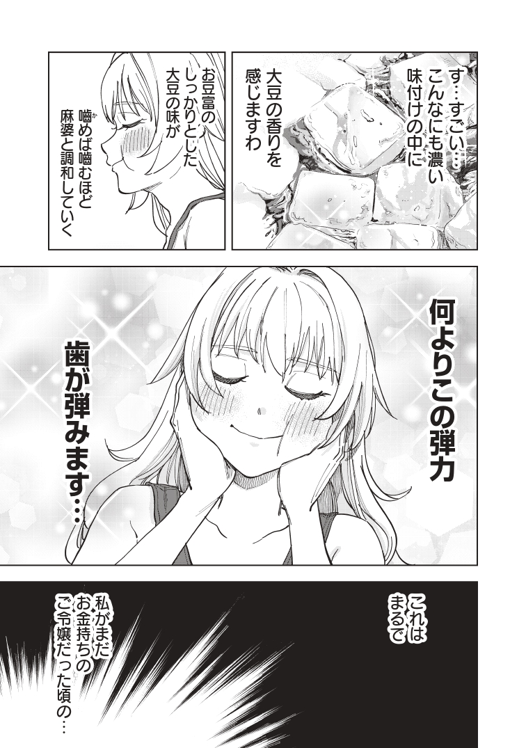 何より、没落令嬢が試行錯誤しながら食事を楽しむ姿はこちらまでうれしくなる。本作を読んだあとは自分へのご褒美に、高級食材(もちろん5000円以内)を探しに街に出かけてみてはどうだろう。