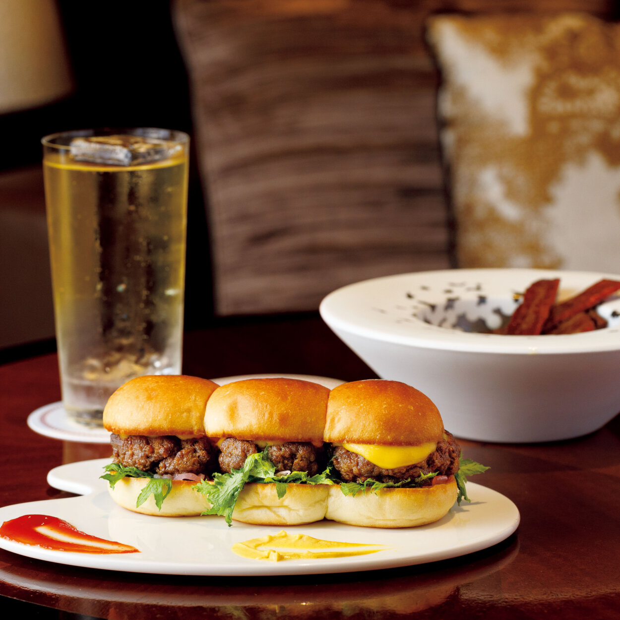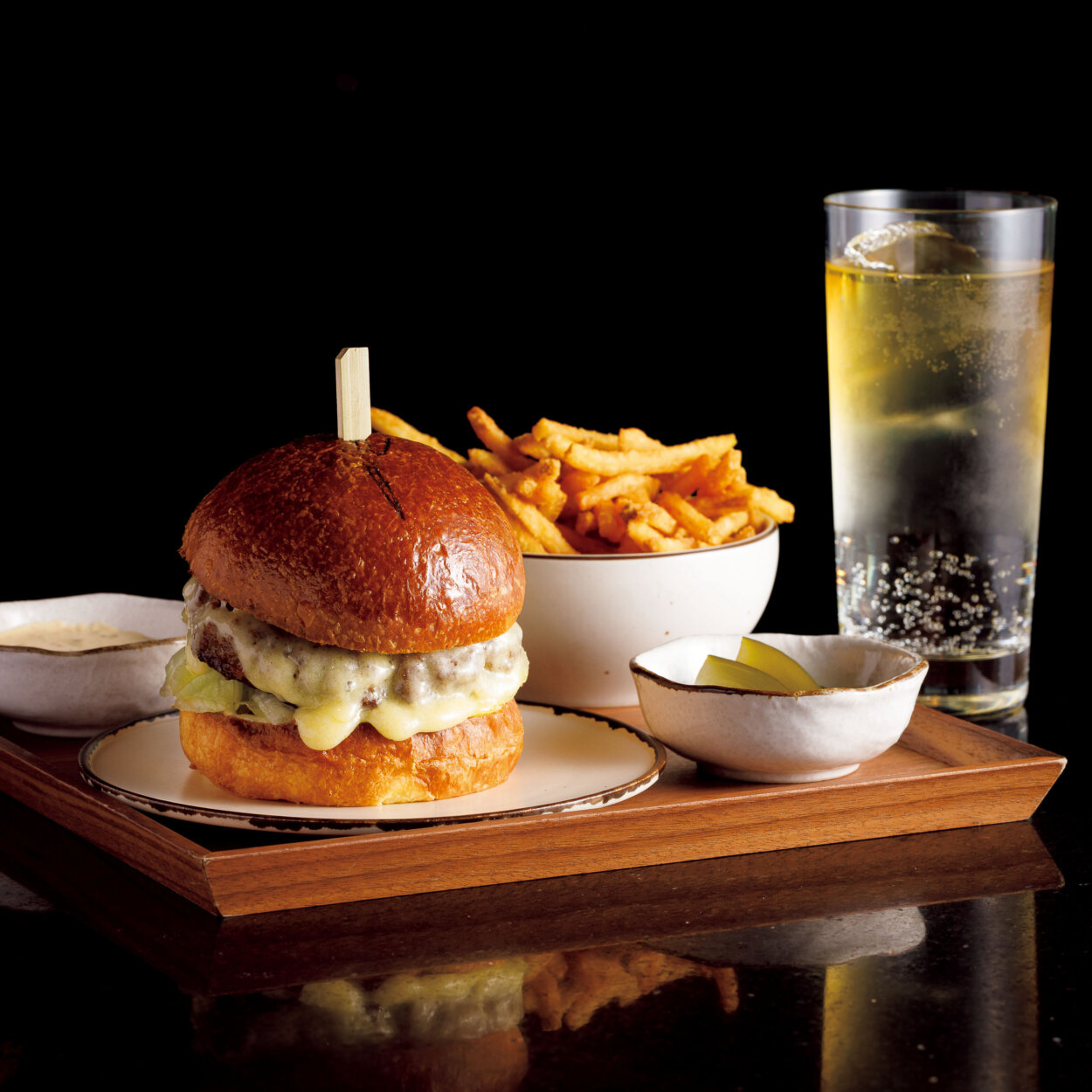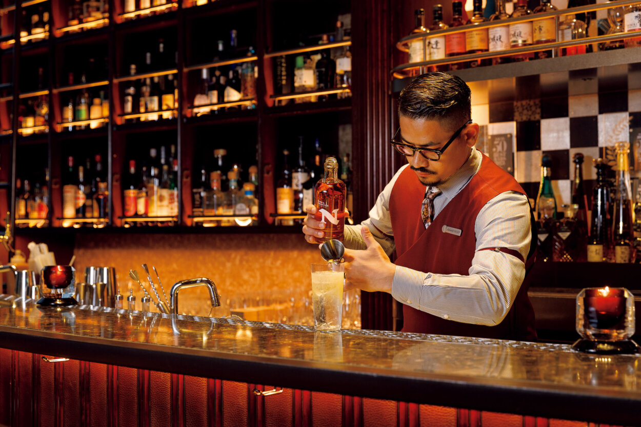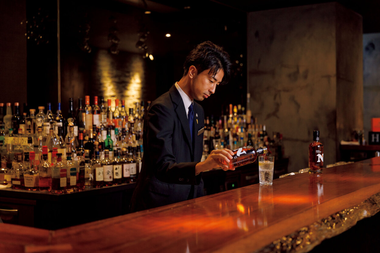 氷と炭酸を入れたグラスに、ウイスキーを静かに注ぐことで生まれる、二層に分かれた美しい佇まい。最初はウイスキー本来の香りを堪能し、時間とともに混ざっていく味わいの変化を楽しむ。