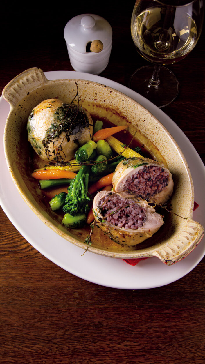 1.『ラミティエ』鶉と黒米詰めロースト3000円、牡蠣のビスク900円