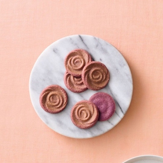 紫色のバラをイメージしたというブルーベリーのサブレ。一見シンプルだが、カリッと弾けるような歯触りが軽やか。粉っぽさがないのは米粉を使っているからだとか。