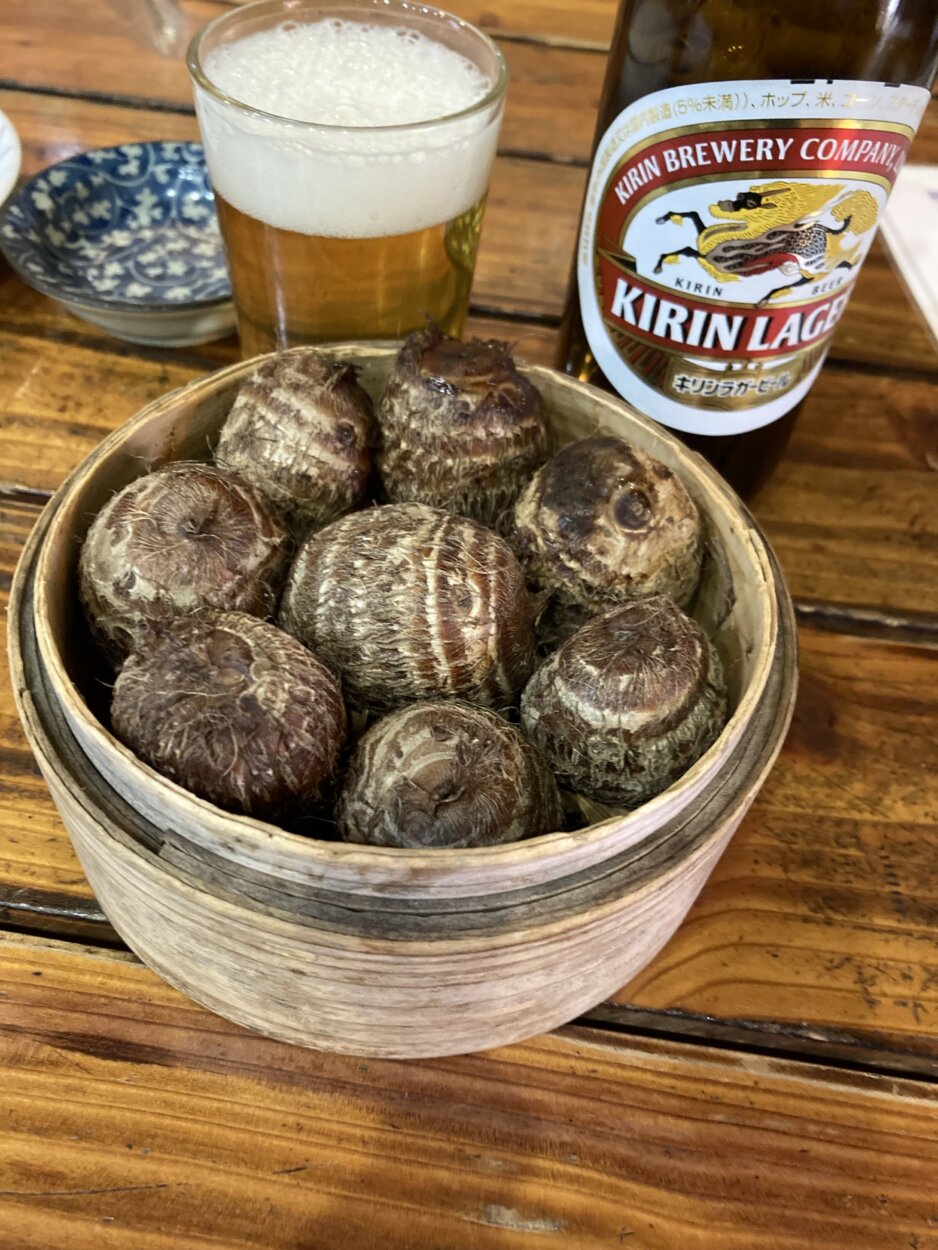「カツ丼」の前に準備運動で「さと芋とイカの煮もの」をいただきました。これは断然日本酒が合います。競馬新聞片手にほろ酔い気分で勝ち馬を予想する時間は、何にも代えがたいひとときです。