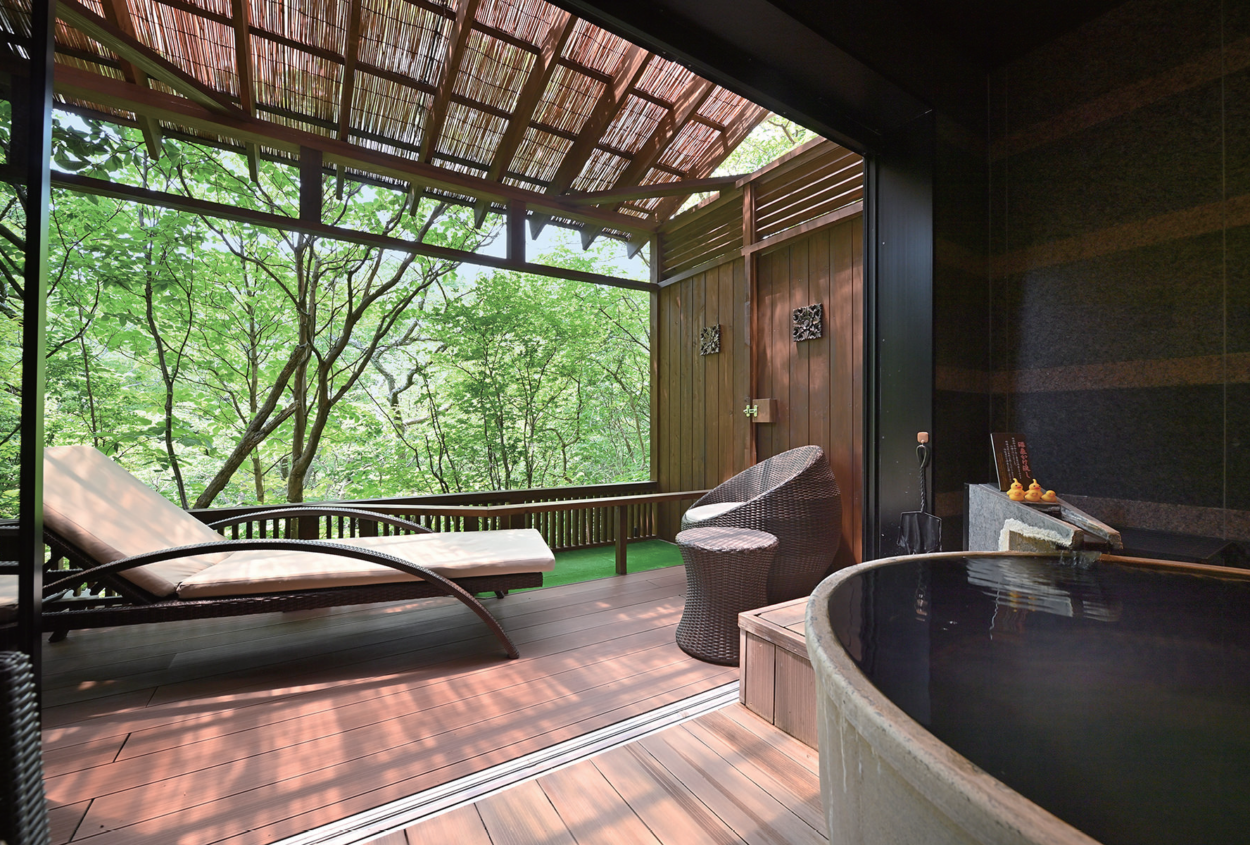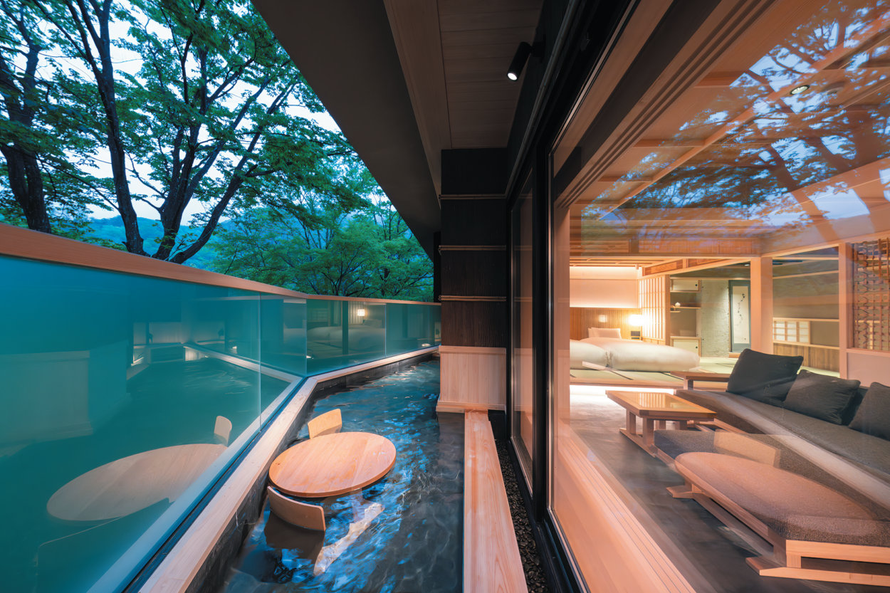 年々増え続ける露天風呂付き客室。2024年から2025年の間で新しく誕生した宿や、リニューアルして快適さが増した宿を集めました。今回は、神奈川・箱根宮ノ下温泉、秋田・湯瀬温泉、福島・会津東山温泉、栃木・那須高原の山あいで木々に囲まれながら、露天風呂を満喫できる客室をご紹介します。