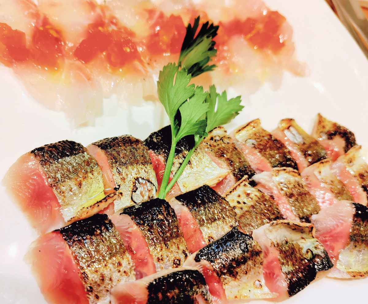 ×日:雨だ、あの店に行こう、と今季豊作のサンマをお刺身とカルパッチョで。谷中・初音小路のイタリアンバル『ネネコロ』は小さな店なので、雨の日は「今日なら入れるかも」と思い浮かぶ。気さくなシェフを交えてワインで盛り上がり。