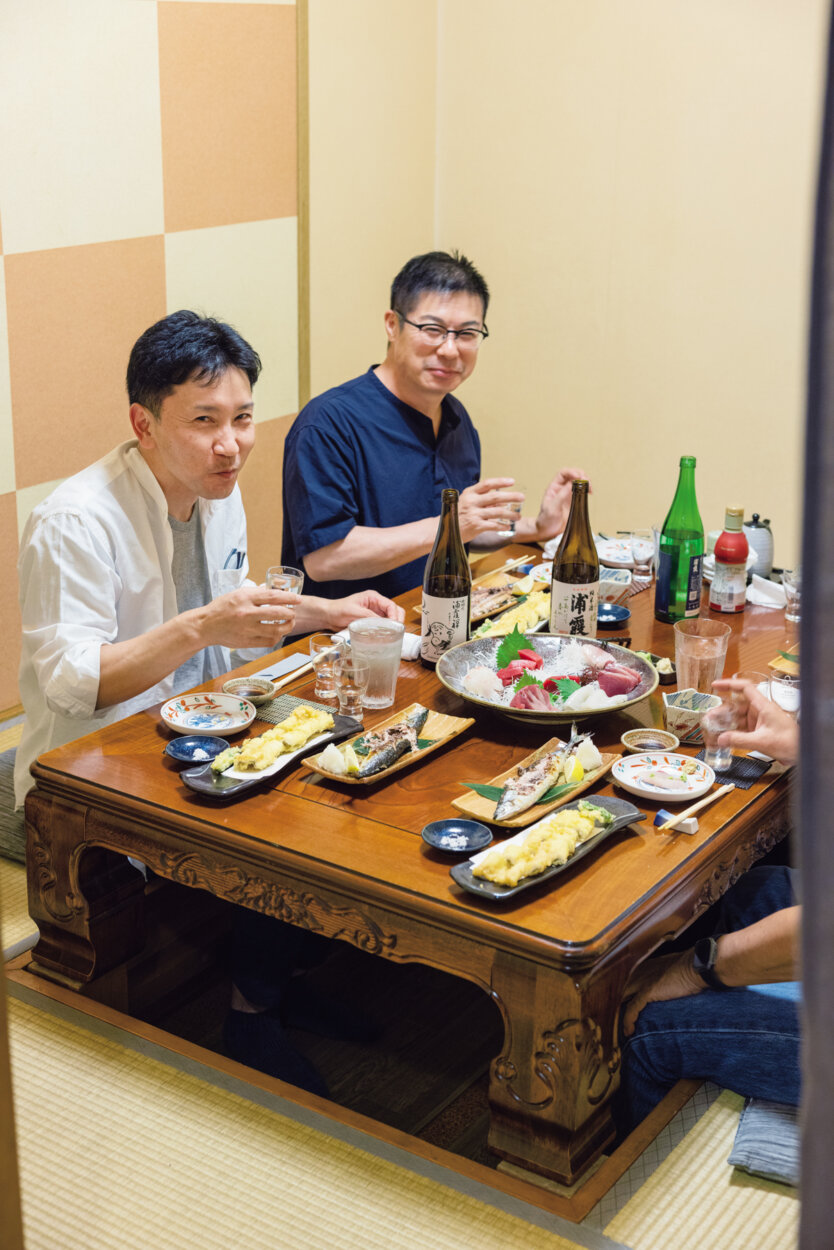 塩竈は魚介の宝庫。カキ、ホヤ、ミズダコ、ソイ……名物は枚挙にいとまがない。穴子の天ぷらをサクリと頬張り、浦霞禅をキュッと。サンマの塩焼きの身をハラワタごと口に入れ、純米酒「浦霞」を合わせて、ムフッとうれしいため息を漏らす。蔵の仲間と飲む時は数種の浦霞を同時に、思い思いに酌む。