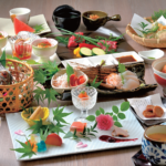 食事は夕朝とともに、上州牛やニジマスなどの山川の幸を使用した季節の山中料理。地場の旬を、群馬の地酒と一緒に客室または個室食事処で味わえる。