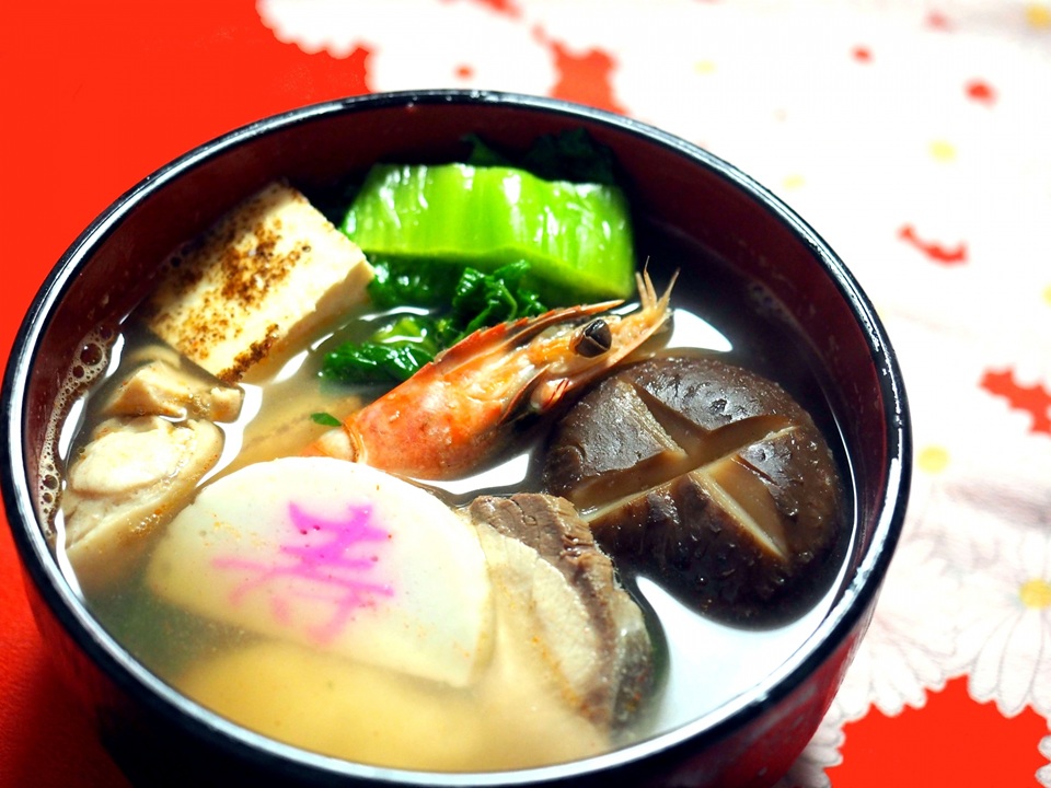 福岡の正月に欠かせないかつお菜を使った雑煮は、焼いた丸餅を椀に入れ、鰤や鶏肉などとともに澄まし仕立てで仕上げます。ここにかつお菜を加えることで、鰹節を使わなくても十分な出汁の風味が出るとされます。