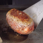 肉汁弾ける熱々を頬張れば、国産牛と黒毛和牛をブレンドした粗挽きのごろっとした肉感から旨みと香ばしさが押し寄せてくる。となれば飯だ。佐賀県産米を羽釜で炊いたご飯はふっくらモチモチ。欲望に身を委ね、肉と米に没入できるところもお気に入り。